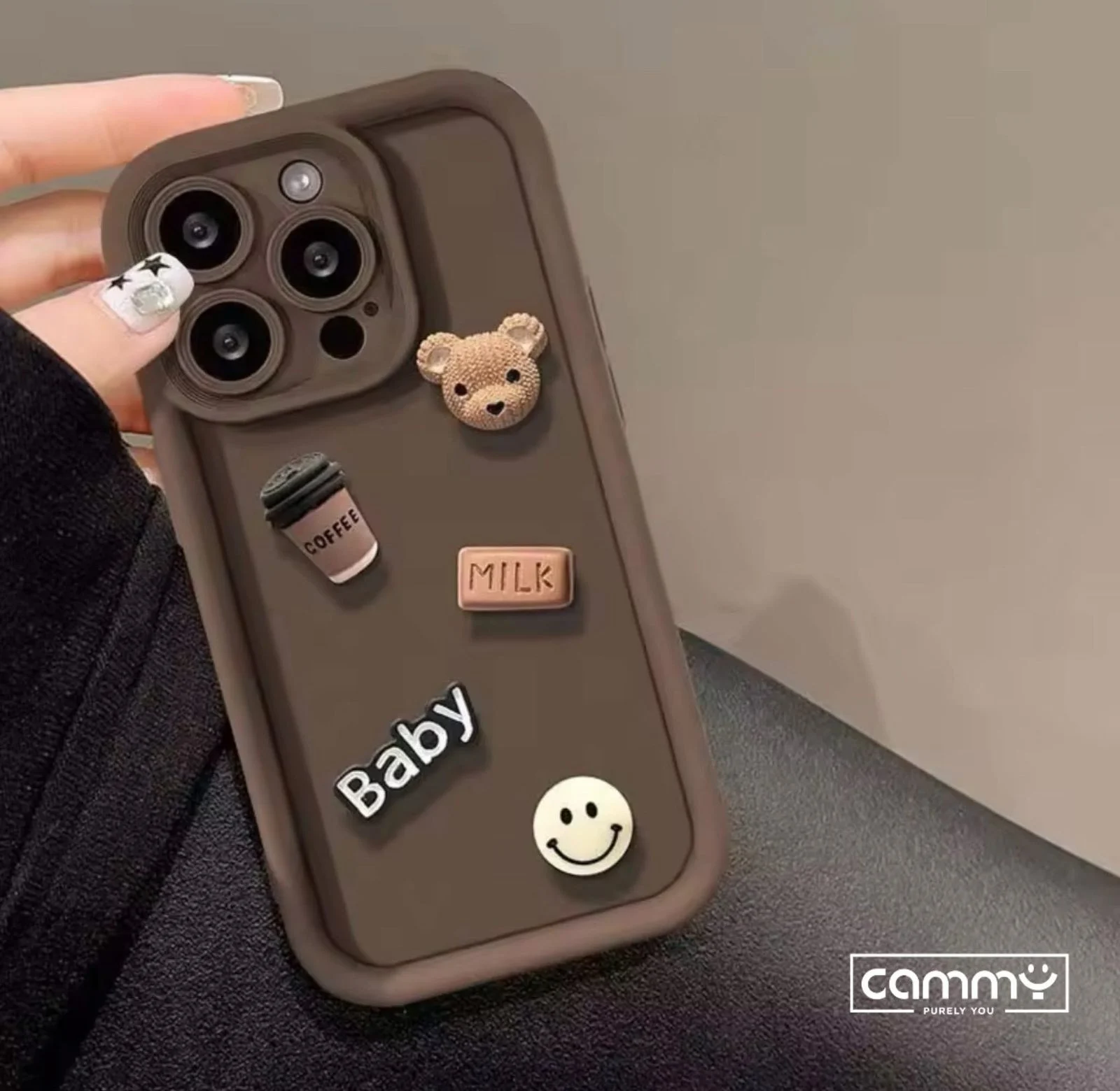 Fashion Lovely Cute Minimalism Soft Silicone Coffee Kawaii Cool 3D Bear Cute iPhone Back Cover For Girls
