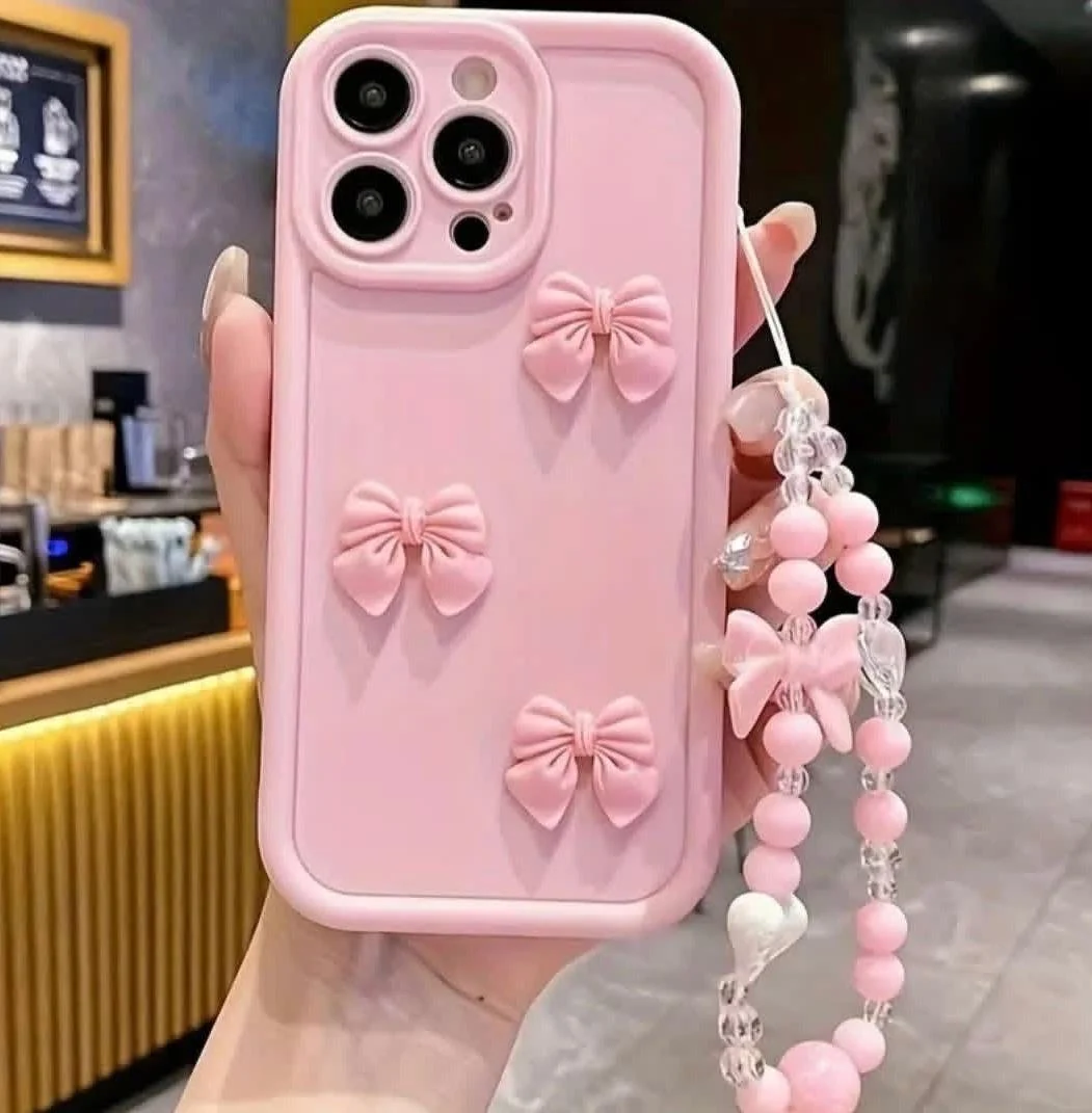 Home / iPhone Models / 12 Pro Max / Solid Triple Mini Bow with Charm Silicone Case For iPhone 16 15 14 13 12 11 Pro Max Mini X Xs SE2 7 8 Plus Back Cover – Cute Wavy Edition For Girls