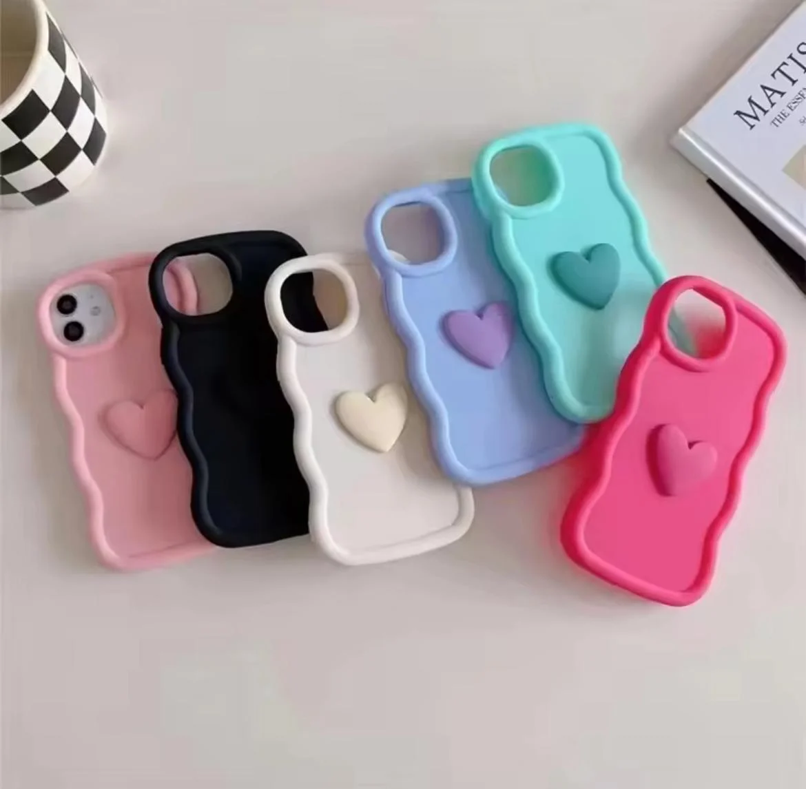 Stylist 3D Heart Soft Silicone Case For iPhone 16 15 14 13 12 11 Pro Max Mini X Xs 6 6s SE2 7 8 Plus Back Cover – Cute Wavy Edition For Girls